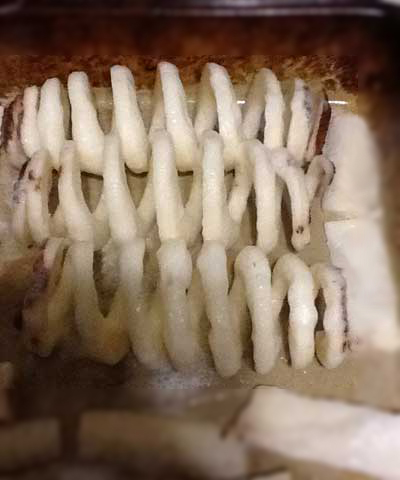 If thrifty – slice the potato “cores” in half, spray, and bake along side the curls.