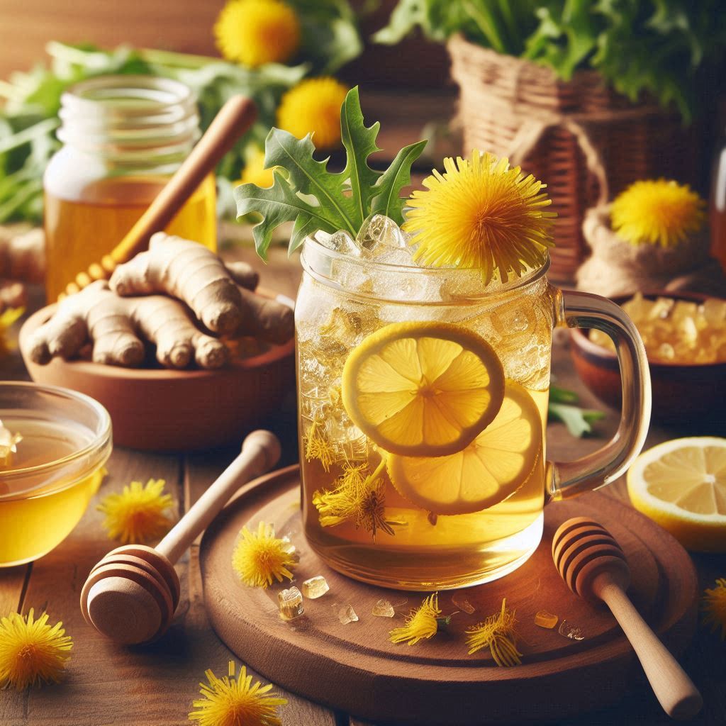 Add tea bags to 4 cup Pyrex measuring cup. Fill with boiling water up to 4 cup mark. Add sugar and lemons, ginger stir without breaking tea bags, let steep for 1/2 hour then remove bags. Continue to let cool, then chill and enjoy.