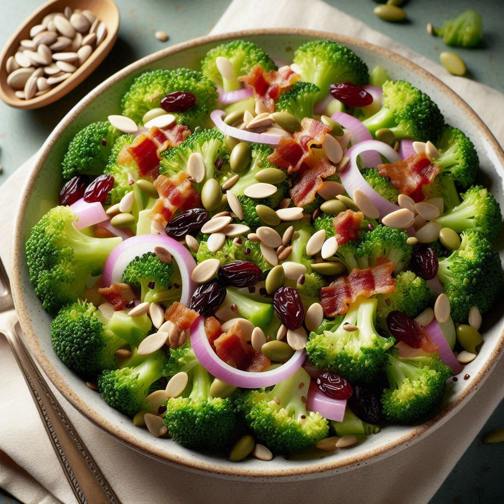 Broccoli Salad with Bacon and Almond Slivers. This is a great salad recipe to get fresh, raw broccoli down the hatch, and do it happily! If you like sweet n salty, this is for you.